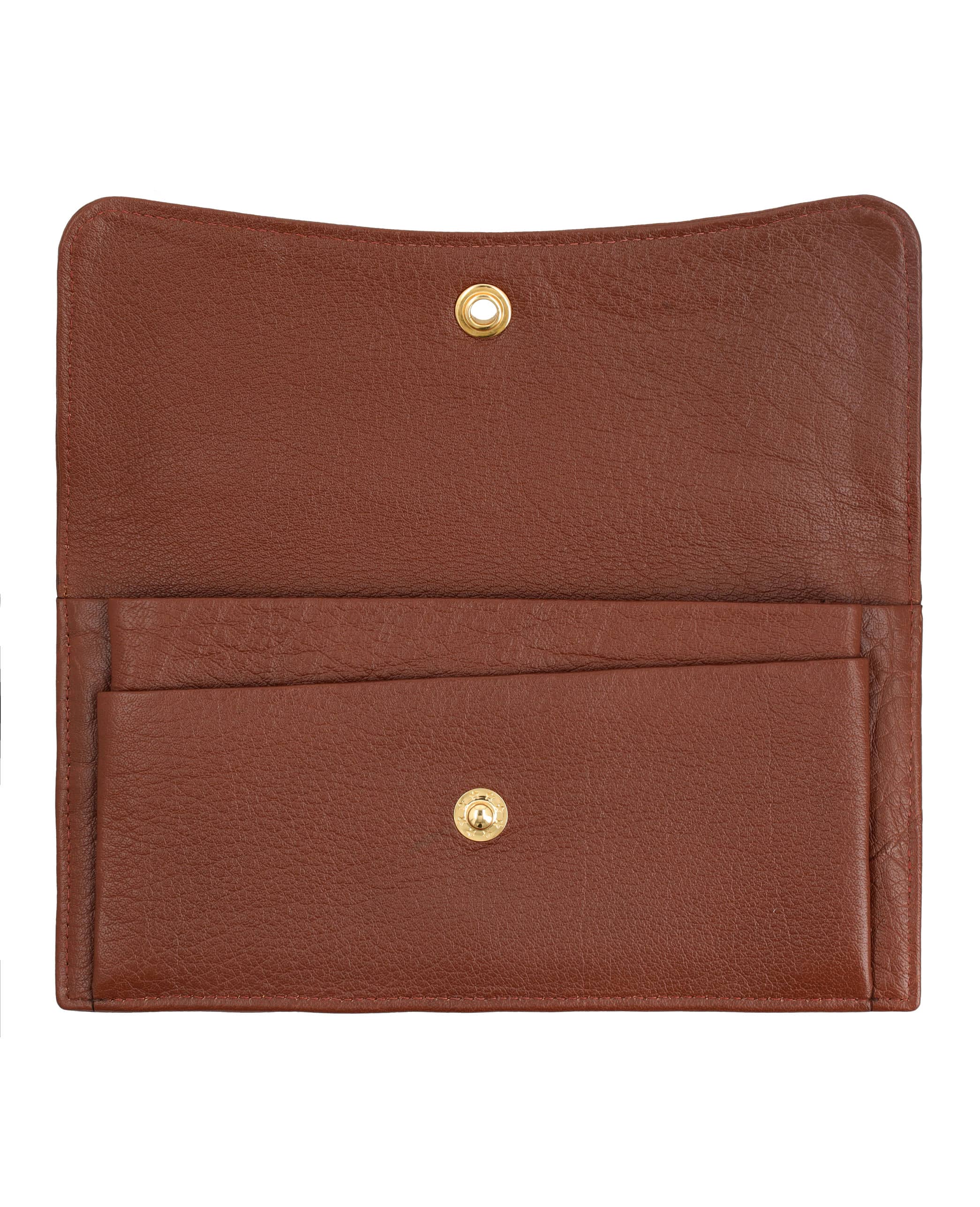 Stylish long leather wallet secures cards with a snap, keeps coins organized in its handy pouch.